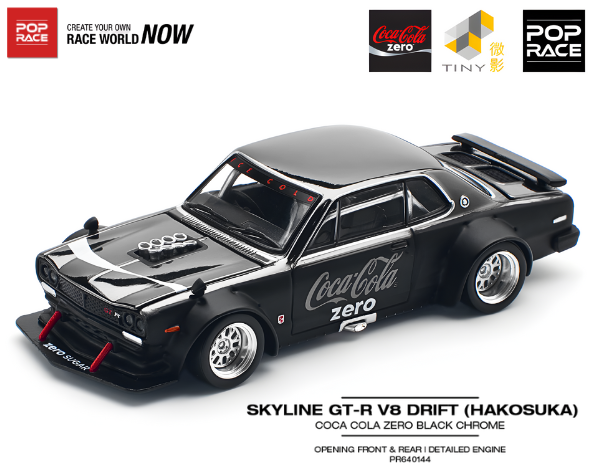1/64スケール POP RACE「スカイラインGT-R V8 DRIFT (HAKOSUKA) COCA COLA」(クロームブラック)ミニカー