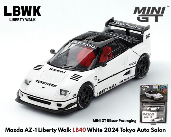 1/64スケール MINI GT「マツダAZ-1 リバティーウォークLB40 東京オートサロン2024 ホワイト」(MINI GTブリスターパッケージ版)ミニカー